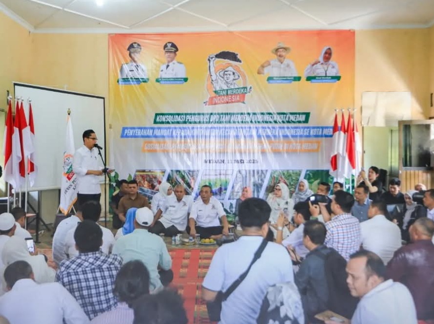 Mandat kepada Koordinator ini diserahkan Rico Waas pada kegiatan yang digelar DPD Tani Merdeka Indonesia Kota Medan sekaligus Konsolidasi Pengurus dan Sosialisasi Pembentukan Koperasi Merah Putih di Aula Kantor UPT Penyuluhan Dinas Ketahanan Pangan, Pertanian dan Perikanan Kota Medan, Jalan Keramat Indah, Medan Denai, Minggu (11/5/2025).