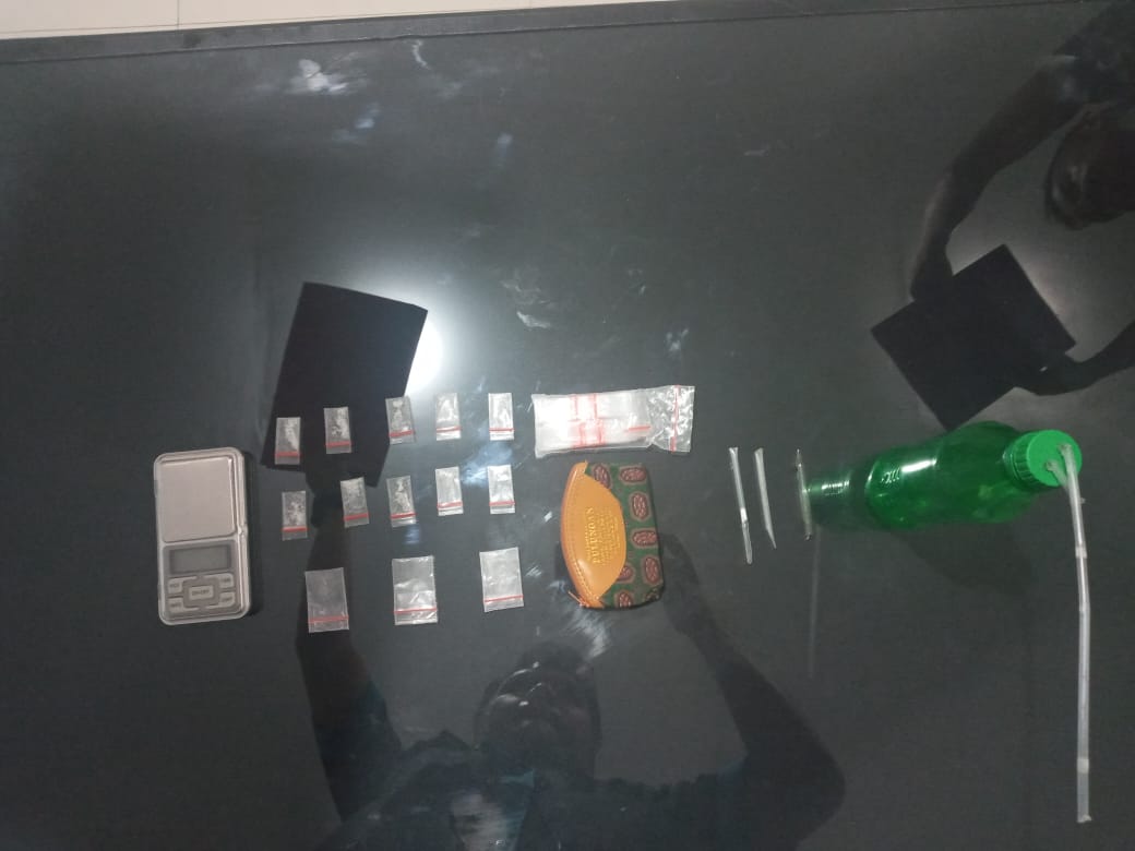 Gerak cepat Personil Satresnarkoba menemukan 1 (satu) buah dompet kecil corak batik bertuliskan Tk. Mas Pulungan berisikan 10 (Sepuluh) paket plastik klip berles merah diduga berisikan narkotika golongan I jenis shabu dengan berat brutto 1,62 (satu koma enam puluh dua) gram, 3 (tiga) lembar plastik klip berles merah dalam keadaan kosong.