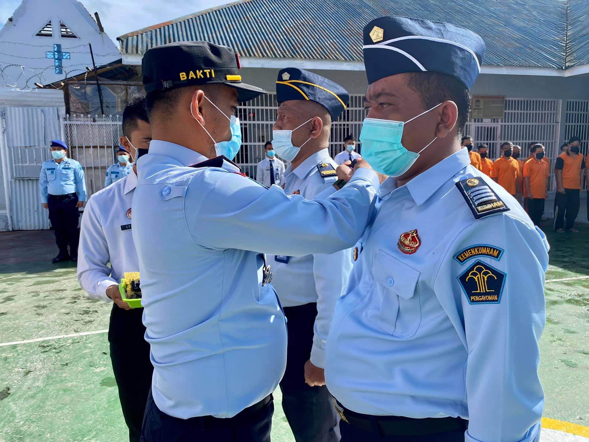 Kepala Rutan Kelas IIB Kabanjahe, Sangapta Surbakti memimpin langsung upacara kenaikan pangkat serta penyematan tanda pangkat kepada dua orang pegawai Rutan Kelas IIB Kabanjahe.