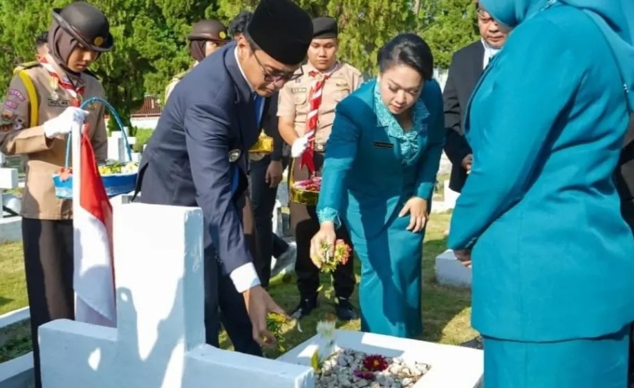 Usai pemberian penghormatan Rico Waas bersama rombongan pun melangkah ke area makam dan menabur bunga di pusara para pahlawan.