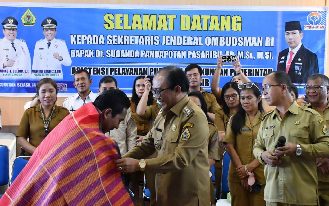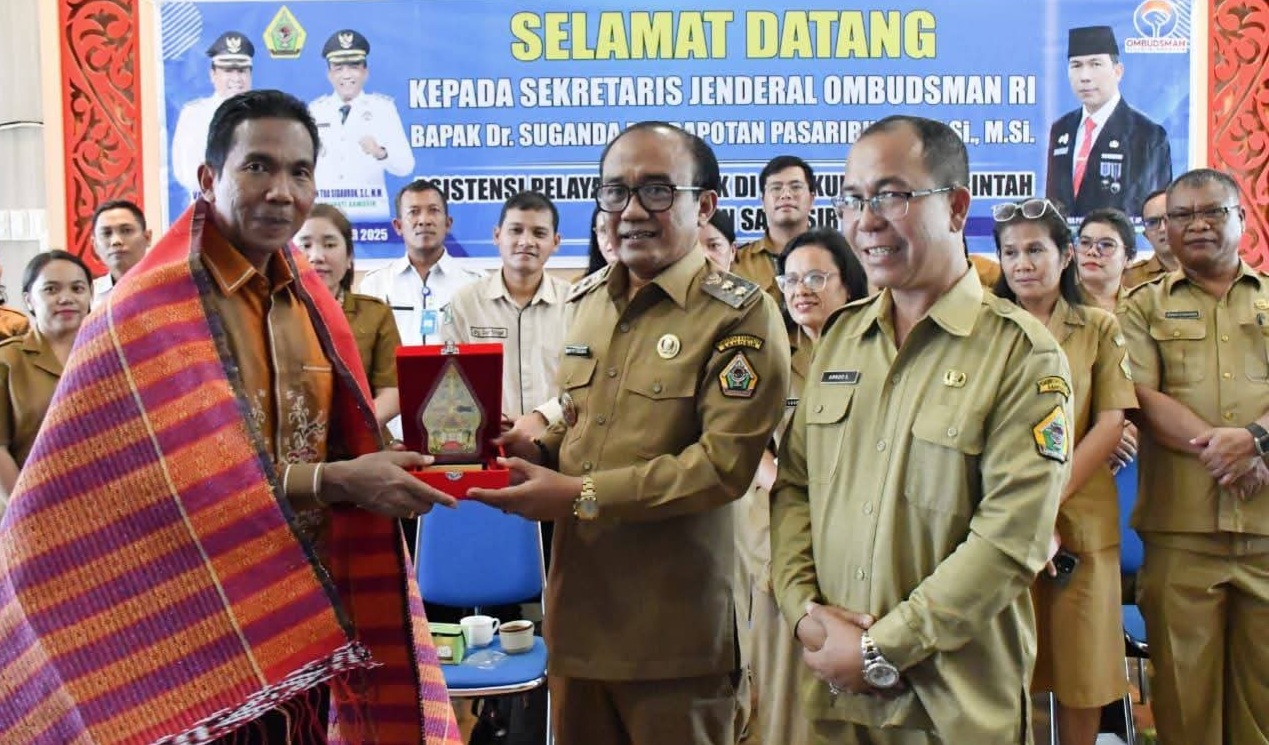 Samosir, Karosatuklik.com – Dalam rangka peningkatan kualitas pelayanan publik di lingkungan Pemerintah Kabupaten Samosir, Sekretaris Jenderal Ombudsman Republik Indonesia Dr. Suganda P. Pasaribu, AP., M.Si, M.Si, melakukan kunjungan kerja di Kabupaten Samosir, Selasa (14/10/2025).