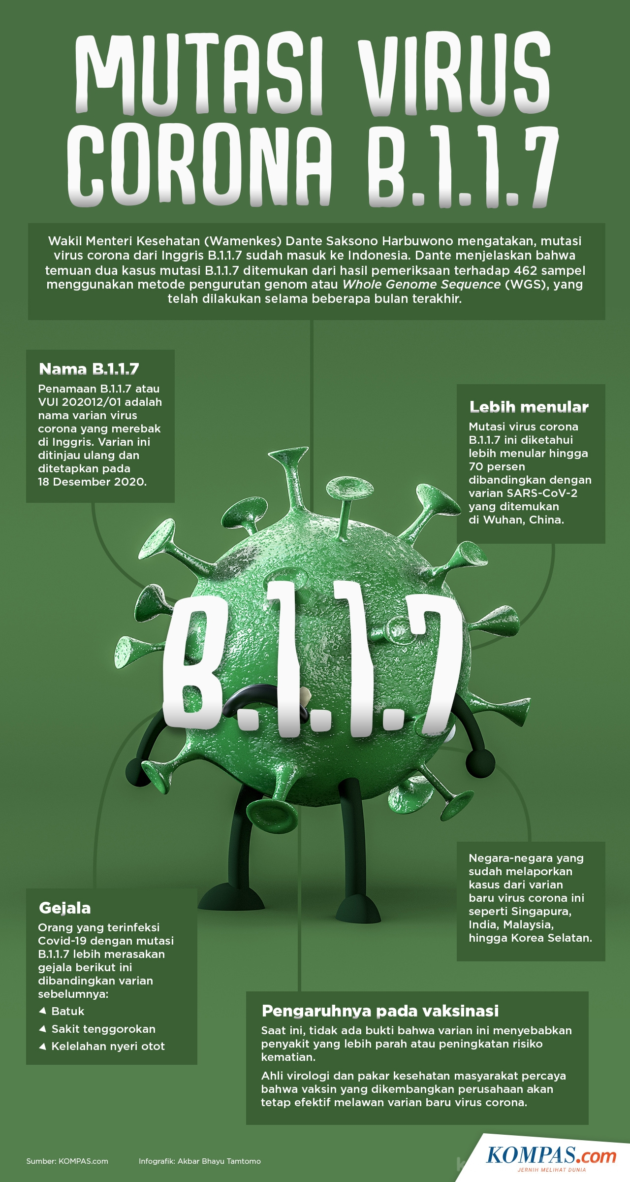 Sebelumnya diberitakan, mutasi virus corona dari Inggris atau B.1.1.7 sudah masuk ke Indonesia.