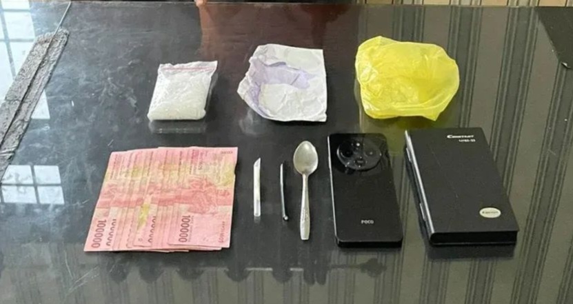Dari mobil Ayla tanpa plat tersebut ditemukan 3 paket sabu seberat 2 gram, beberapa peralatan konsumsi/penyimpanan, serta dua unit telepon genggam.
