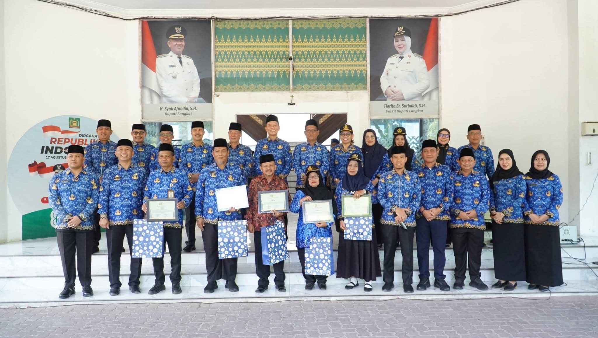 Selain itu, diberikan pula piagam penghargaan kepada enam Purna Bhakti KORPRI sebagai bentuk apresiasi atas kontribusi dan dedikasi yang telah diberikan selama masa pengabdian.