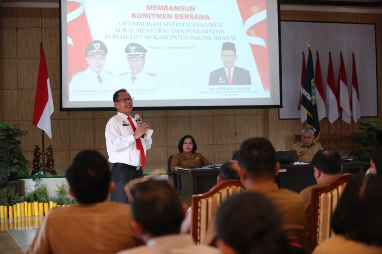 Hal itu diungkapkan Sekretaris Daerah Pakpak Bharat, Jalan Berutu, S.Pd, MM memimpin seminar sistem manajemen surat menyurat dan pengarsipan, di Ruang Aula Sada Ari, Selasa (13/09/2022).