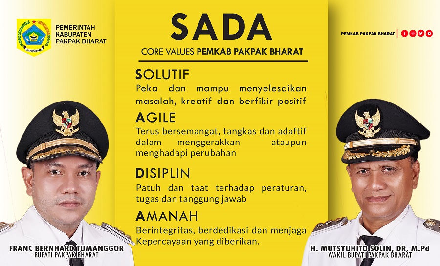Seluruh naskah dinas surat menyurat di Kabupaten Pakpak Bharat harus menggunakan aplikasi yang bernama “SADA”. Dengan diterapkannya aplikasi ini di seluruh perangkat daerah dengan harapan dapat mempermudah komunikasi dan koordinasi antar Instansi dan akses informasi kearsipan yang diperlukan oleh publik.