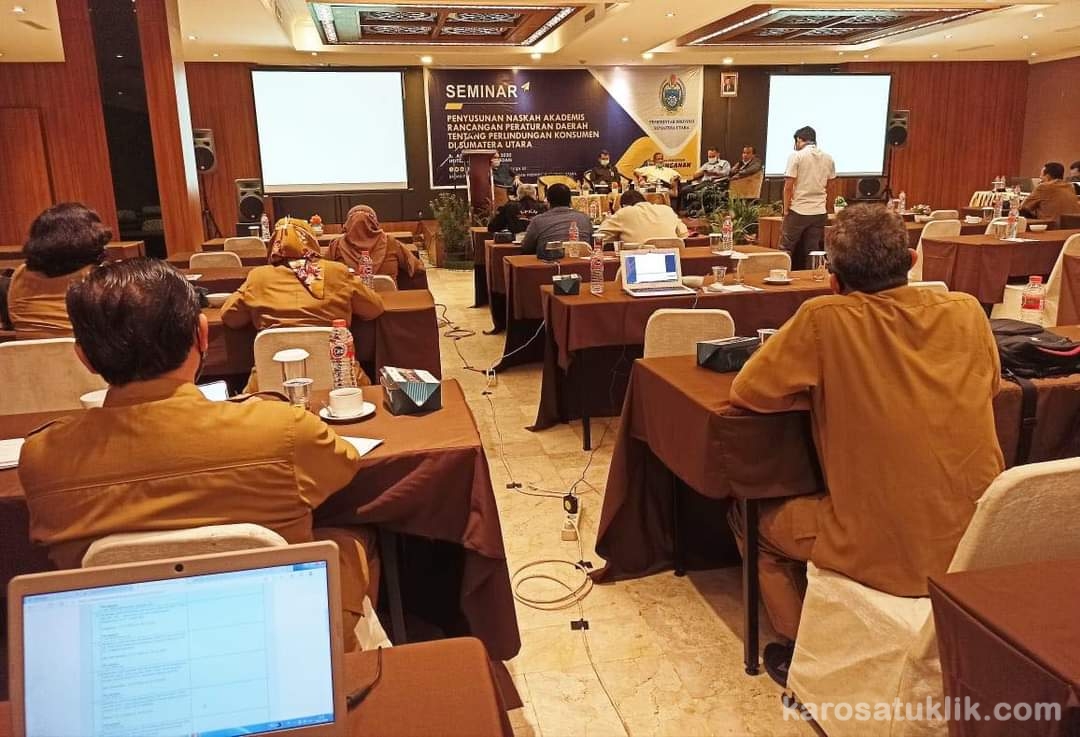 Medan, Karosatuklik.com – Pemerintah Provinsi (Pemprov) Sumatera Utara (Sumut) melalui Badan Penelitian dan Pengembangan (Litbang) menggelar Seminar Penyusunan Naskah Akademik dan Ranperda Perlindungan Konsumen, di Hotel Le Polonia, Selasa (22/12/2020).