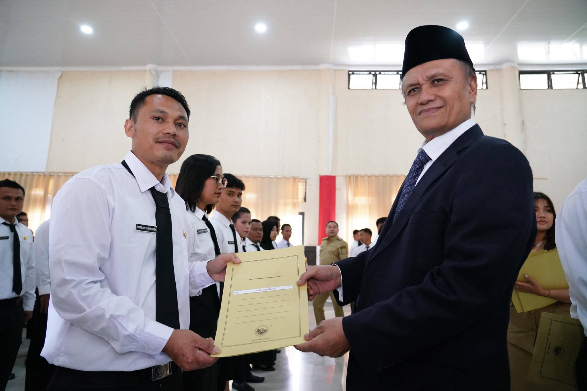 Salak, Karosatuklik.com – Bupati Pakpak Bharat Franc Bernhard Tumanggor menyerahkan Surat Keputusan Pengangkatan Pegawai dengan Skema PPPK Paruh Waktu di lingkungan Pemerintah Kabupaten Pakpak Bharat, Selasa (30/12/2025).