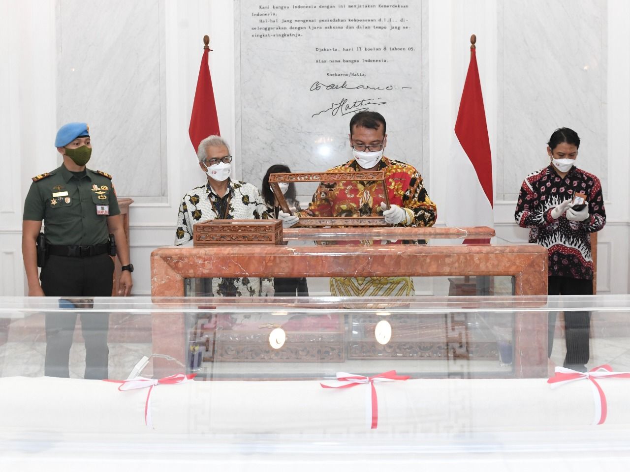 Setpres Kembalikan Teks Proklamasi Tulisan Tangan Bung Karno ke ANRI
