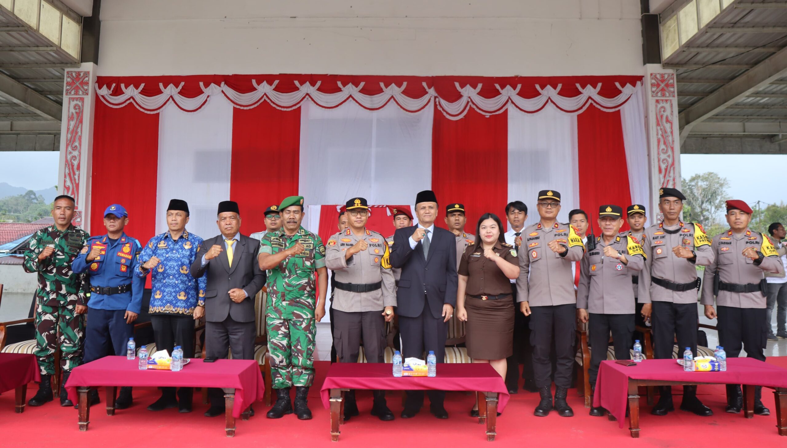 Selanjutnya Jasa Raharja Chairul Rasyid Nasution, Kasatpol PP Esra Anakampun, Danramil 07/Salak Kapten Inf. AF, Sagala para PJU dan Kapolsek serta unsur terkait lainnya.