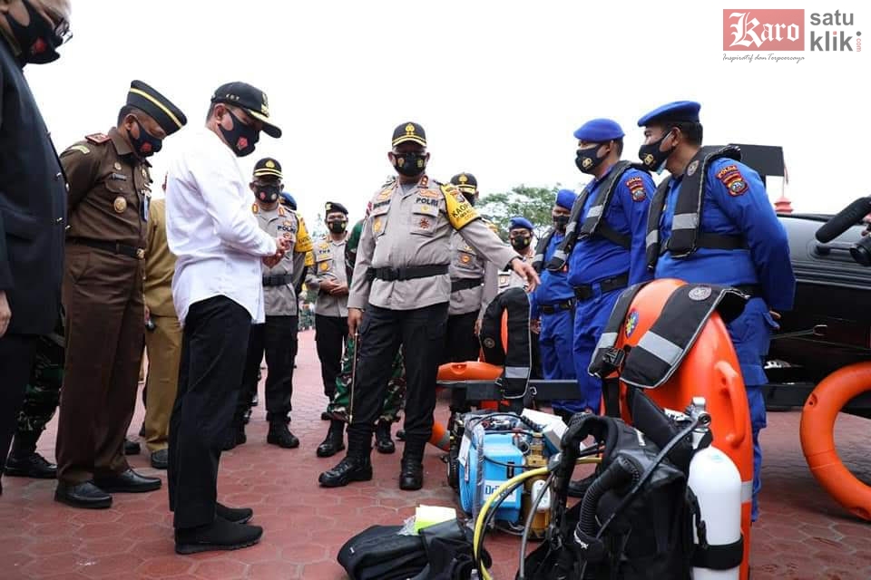 Medan, Karosatuklik.com – Dampingi Gubernur Sumatera Utara, Edy Rahmayadi, Kapolda Sumut Pol. Drs. Martuani Sormin, MSi gelar Apel Kesiapan Antisipasi Bencana Alam di Wilayah Sumut bertempat di Lapangan KS Tubun Mapolda Sumut, Senin (09/11/20). Dalam kegiatan ini Gubernur Sumut, Edy Rahmayadi memimpin langsung apel.