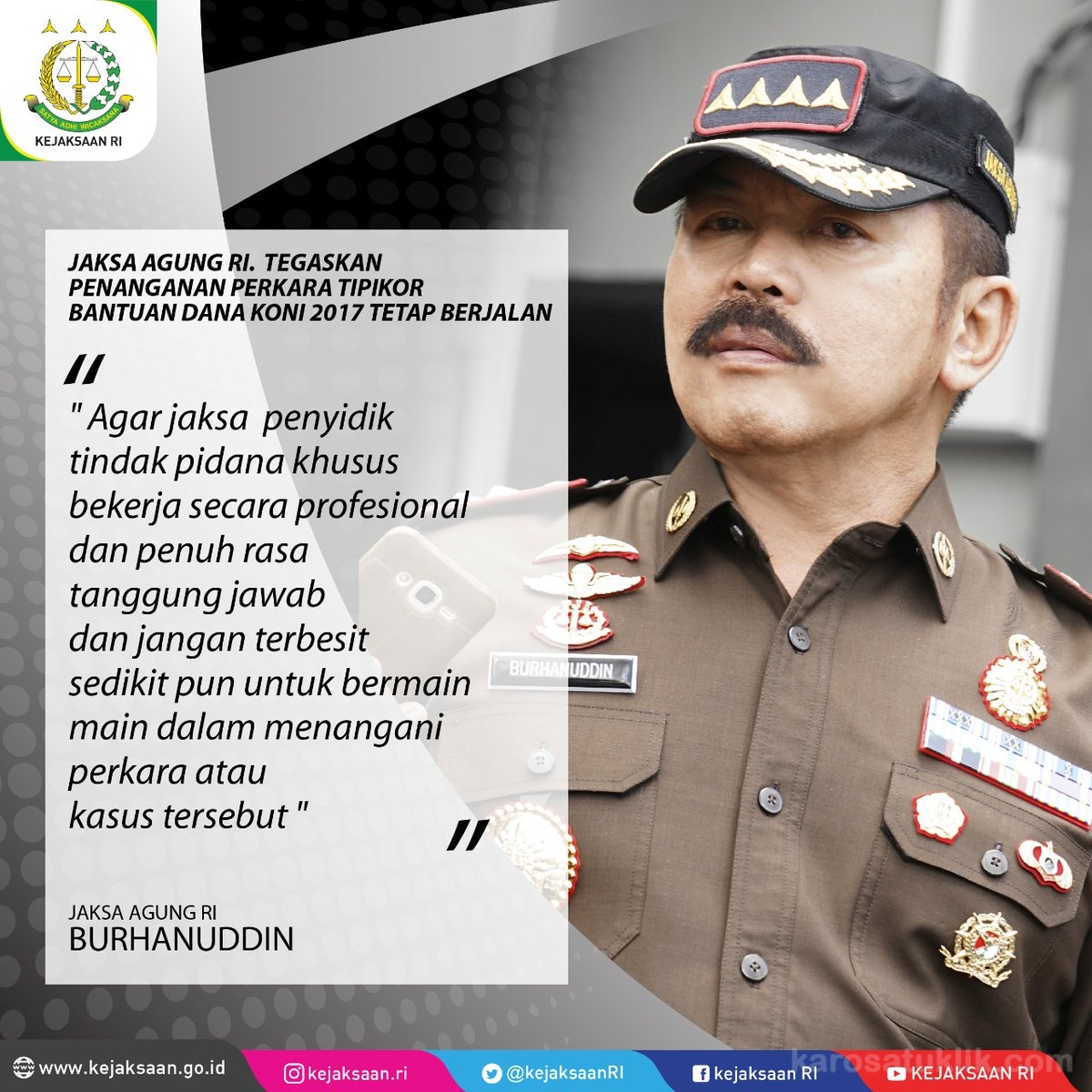 “Saya menjalankan peraturan perundangan, tidak ada istilah kuat tidak kuat, kami aman-aman saja. Pelaksanaan tugas baik baik saja kok selama ini. Insya Allah tidak ada masalah,” ujar Burhanuddin.