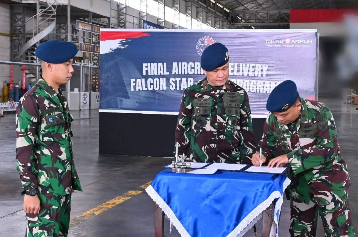 Rangkaian kegiatan juga ditandai dengan penandatanganan berita acara oleh Dangrup 3 Tempur dan Kadislog Lanud Iswahjudi selaku Kasatgas Falcon STAR-eMLU, disertai penyerahan dokumen riwayat pesawat sebagai bagian dari administrasi operasional.
