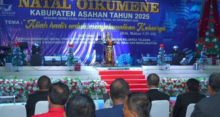 Asahan, Karosatuklik.com – Perayaan Natal Oikumene Kabupaten Asahan Tahun 2025 berlangsung khidmat dan meriah di Gedung Serbaguna (GOR) Kabupaten Asahan, Rabu (3/12/2025) Ribuan umat Kristiani