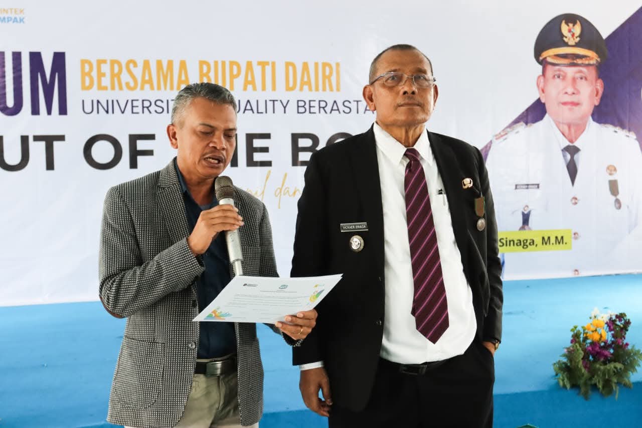 Penandatanganan tersebut disaksikan oleh Ketua DPRD Dairi Sabam Sibarani, Asisten Administrasi Umum Oloan Hasugian, Rektor Universitas Quality Medan, Dedi Holden Simbolon, Kepala BKPSDM Junihardi Siregar, Plt Kepala Dinas Pendidikan Mariady Simanjorang, Kepala Bagian Prokol dan Komunikasi Pimpinan Setda Kabupaten Dairi, Rafael Siringo-ringo.