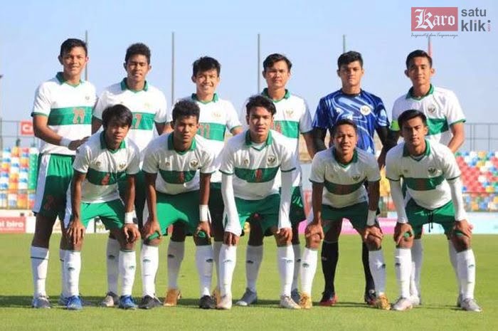 Skuad Garuda Muda saat lawan Timnas Qatar.