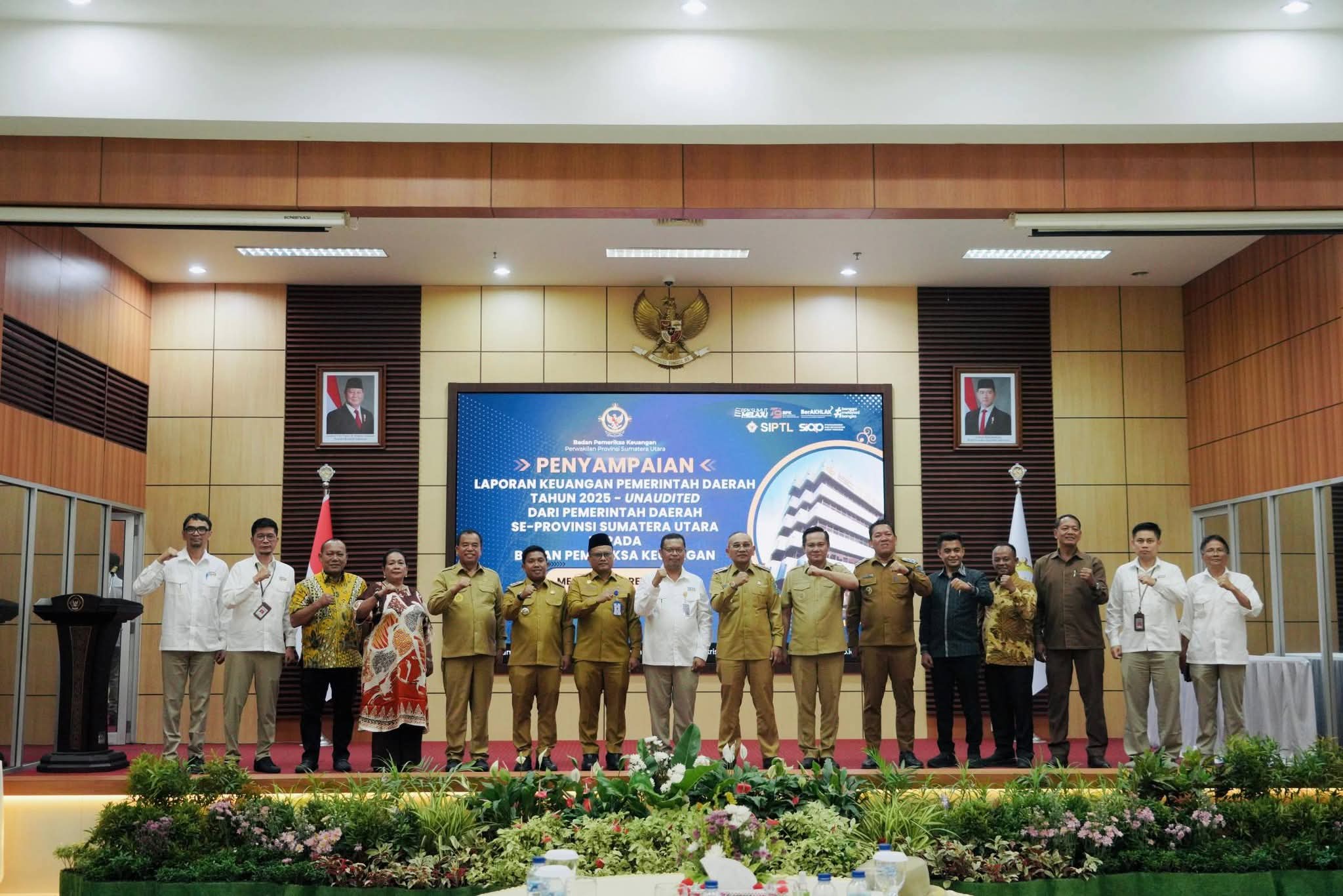 Tercatat lima pemerintah daerah yang menyerahkan laporannya secara bersamaan, yakni Kabupaten Karo, Nias Barat, Simalungun, Kota Padang Sidimpuan, dan Kota Sibolga.