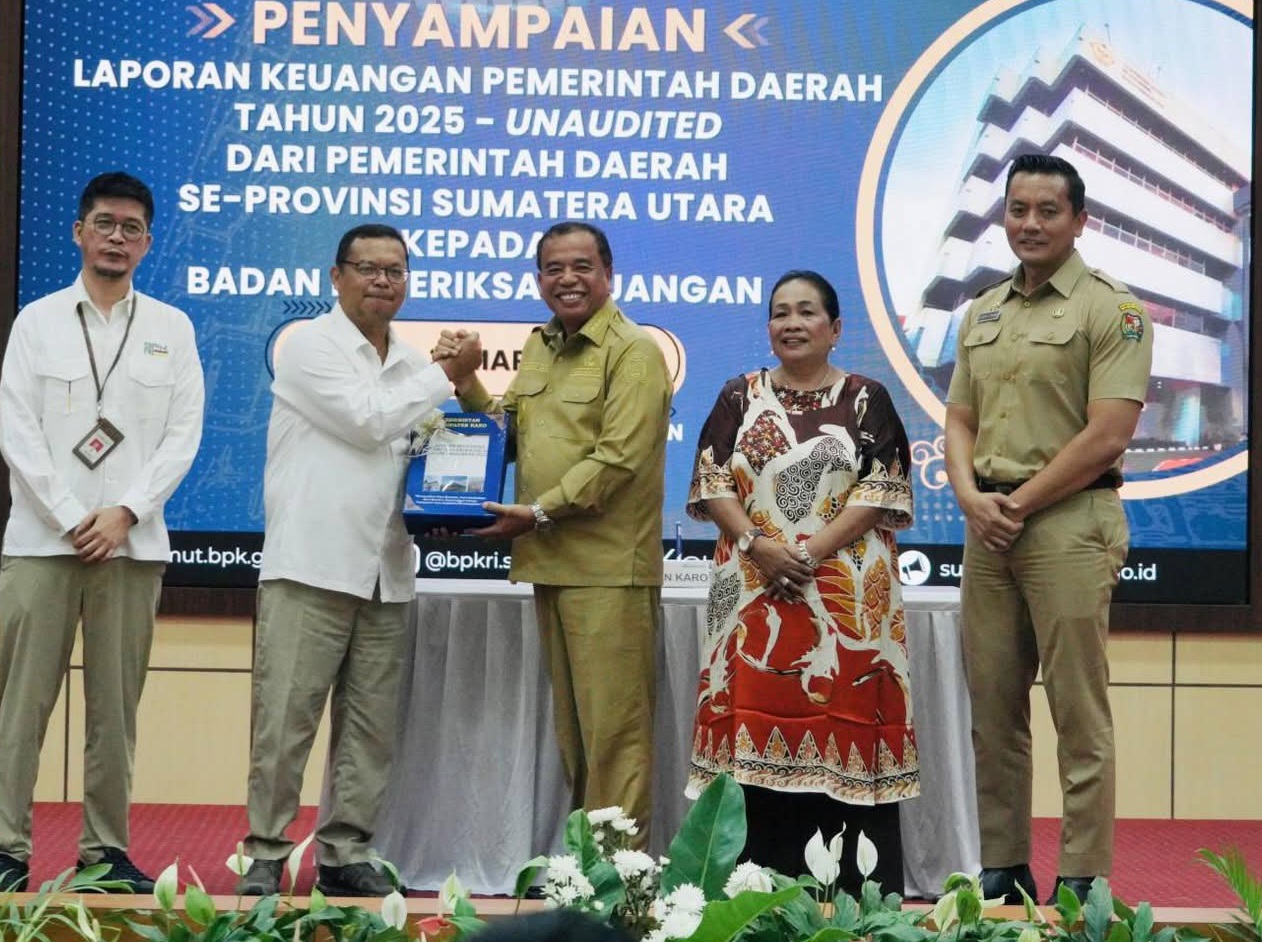 Sementara itu, dokumen LKPD diterima Kepala BPK RI Perwakilan Sumatera Utara, Paula Henry Simatupang, yang ditandai dengan penandatanganan berita acara serah terima.
