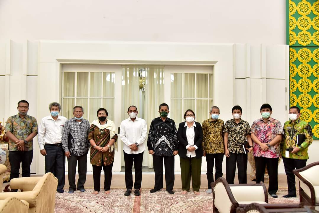 Medan, Karosatuklik.com – Gubernur Sumatera Utara (Sumut) Edy Rahmayadi menerima kunjungan Institut Agama Kristen Negeri (IAKN) Tapanuli Utara (Taput) dan Gerakan Angkatan Muda Kristen Indonesia (GAMKI) kabupaten/kota yang tergabung dalam Pemuda Gereja Denominasi se-Sumut, di Rumah Dinas Gubernur, Jalan Jenderal Sudirman Nomor 41 Medan, Kamis (25/3/2021).