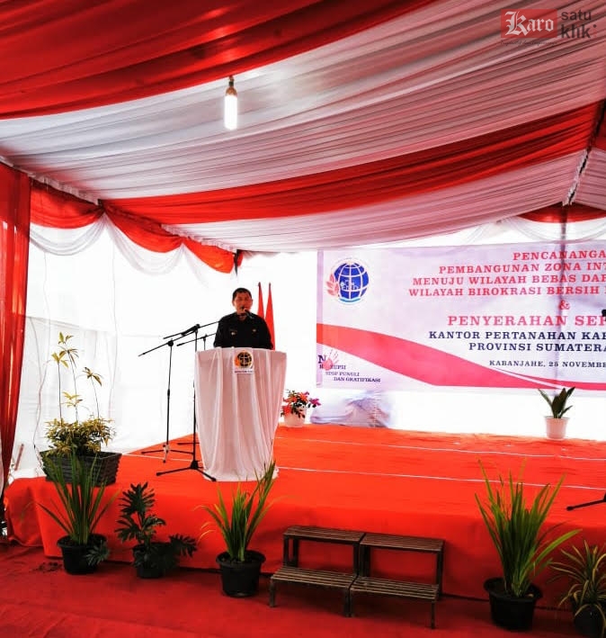 Hal ini disampaikan Bupati Karo Terkelin Brahmana, saat memberikan sambutan sekaligus sebagai saksi dalam penandatangan zona integritas WBK dan WBBM, Rabu (25/11/2020) di halaman Kantor ATR/BPN Kabanjahe, yang berdekatan dengan Kantor Bupati.