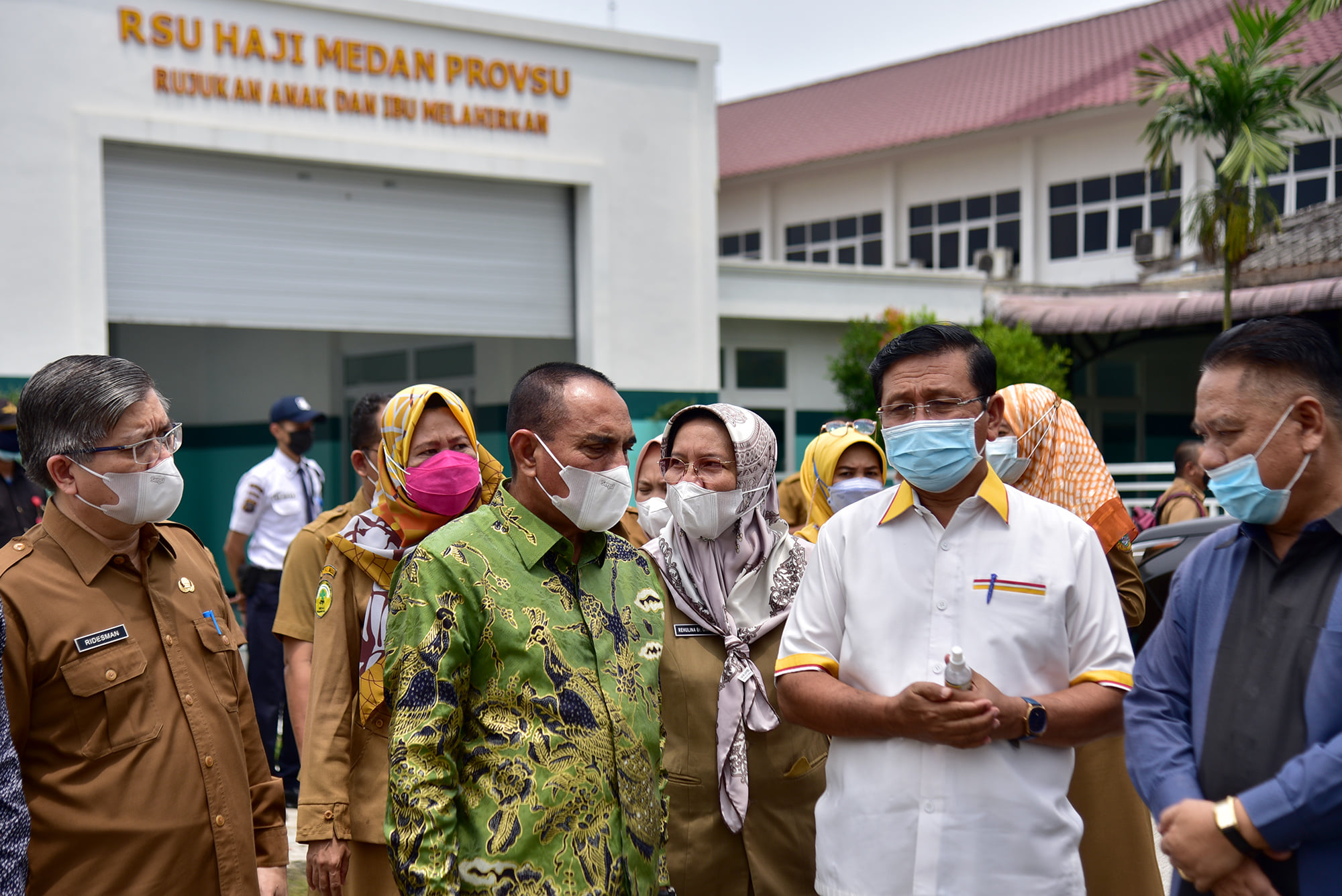 Usai meninjau RS Martha Friska, Edy Rahmayadi bersama rombongan bergerak ke RSU Haji Medan, Jalan Rumah Sakit Haji Nomor 47, Deliserdang. RSU Haji saat ini sedang disiapkan untuk menjadi RS rujukan pasien Covid-19 khusus ibu dan anak.