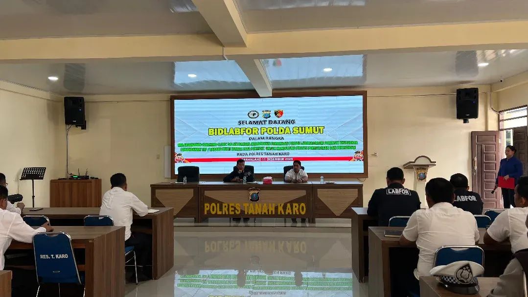 Kabanjahe, Karosatuklik.com – Untuk meningkatkan kompetensi personel dalam penanganan tempat kejadian perkara (TKP), Kepolisian Resor ,(Polres) Tanah Karo menggelar pelatihan Coaching Clinic terkait pembinaan fungsi laboratorium forensik, khususnya dalam penanganan Tempat Kejadian Perkara (TKP) dan barang bukti di Aula Pur Pur Sage Polres Tanah Karo, Jalan Veteran Kabanjahe, Kamis (11/12/2025)