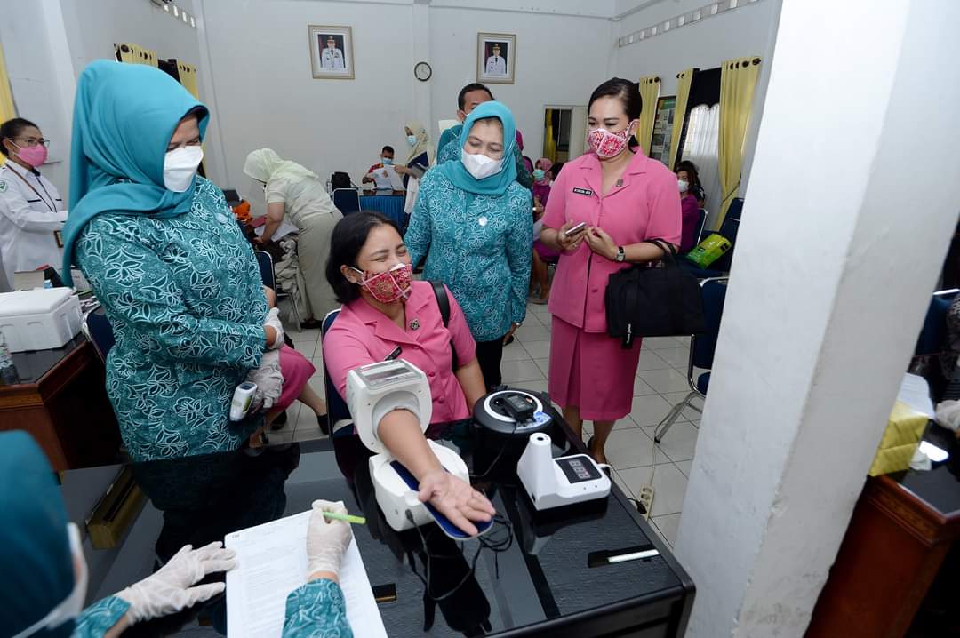 Medan, Karosatuklik.com – Ketua Tim Penggerak Pemberdayaan Kesejahteraan Keluarga (TP PKK) Provinsi Sumatera Utara (Sumut) Nawal Edy Rahmayadi bersama Wakil Ketua I TP PKK Sumut Sri Ayu Mihari meninjau pelaksanaan vaksinasi Covid-19 di Kantor TP PKK Sumut, Jalan Teuku Cik Ditiro Nomor 8 Medan, Kamis (1/4/2021).