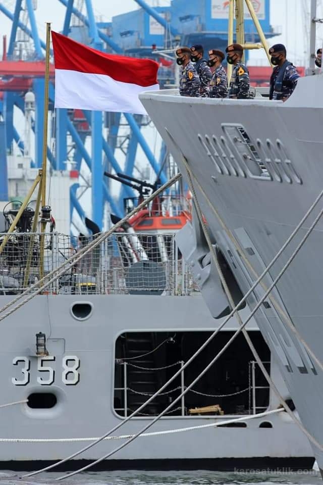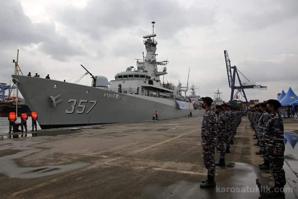 Jakarta, Karosatuklik.com – Panglima Komando Armada I (Pangkoarmada I) Laksda TNI Abdul Rasyid K., S.E., M.M. yang diwakili oleh Pangkolinlamil Laksda TNI Irvansyah, S.H., CHRMP, M.Tr. (Opsla) melepas KRI Bung Tomo-357 untuk mengikuti Multinational Exercise AMAN-21 / Latihan Bersama (Latma) Multinational Exercise AMAN-21 di Pakistan dan KRI John Lie-358 yang melaksanakan pelayaran muhibah/port visit ke Brunai Darussalam di Dermaga JICT II, Tanjung Priok DKI Jakarta. Jumat (29/01/21)