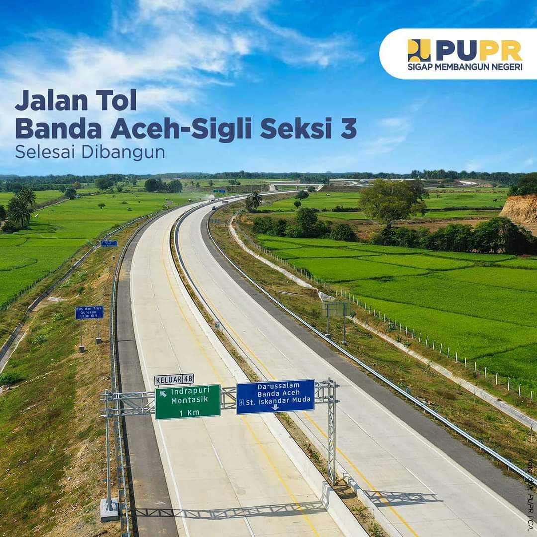 Ruas tersebut telah selesai dibangun dan siap dioperasikan berdasarkan Surat Keputusan (SK) Menteri PUPR No. 197/KPTS/M/2021 tanggal 26 Februari 2021 tentang Penetapan Pengoperasian Jalan Tol Sigli-Banda Aceh Seksi 3 (Jantho-Indrapuri), lanjutnya.
