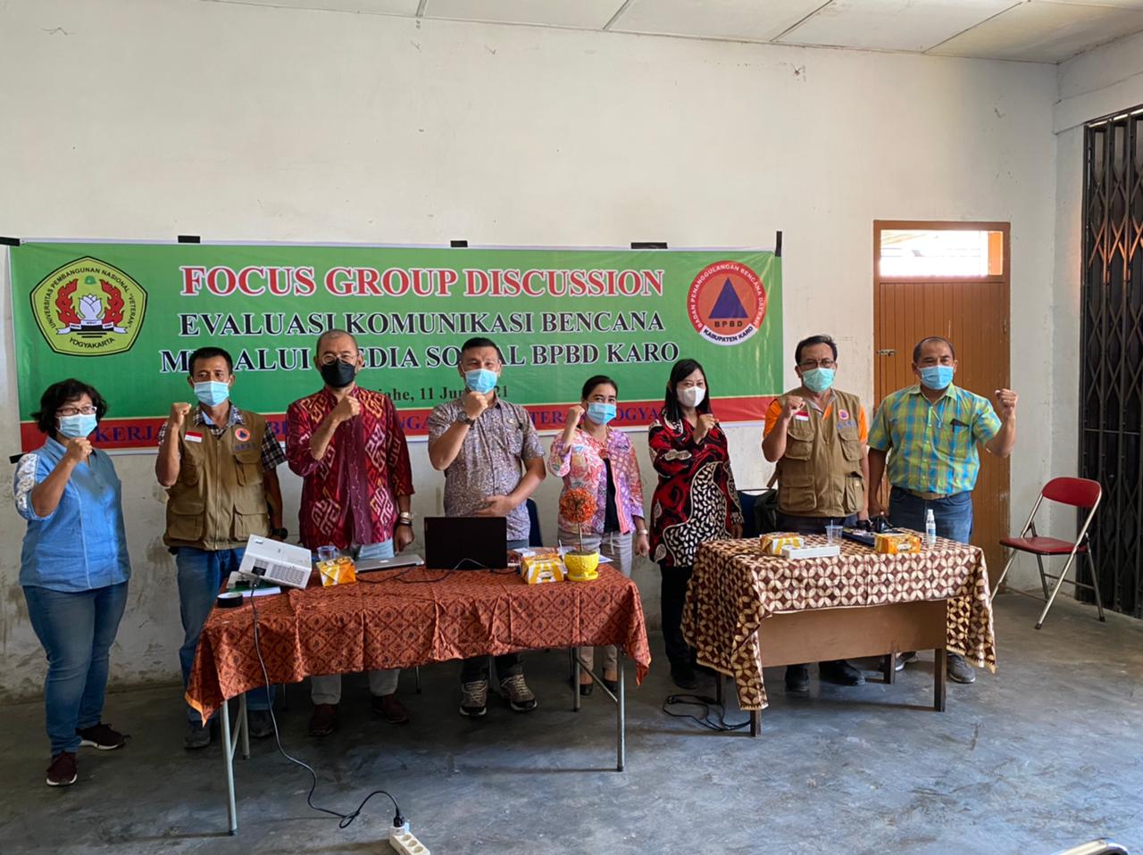 Diprakarsai Associate Professor Dr Puji Lestari, SIP, MSi dari UPN Veteran Yogyakarta bekerja sama dengan BPBD Kabupaten Karo melalui kegiatan Focus Group Discussion (FGD) evaluasi komunikasi bencana melalui media sosial BPBD Karo.