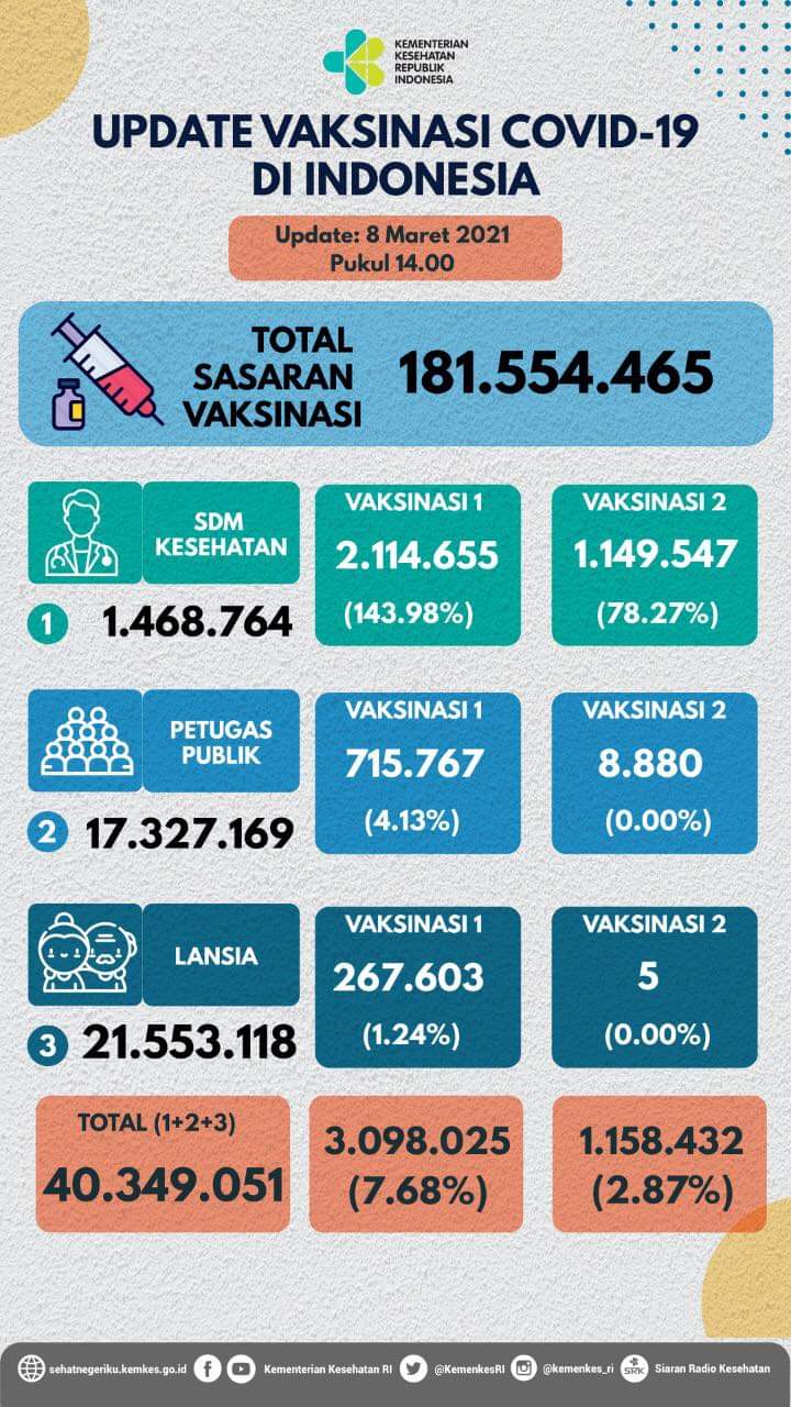 “Vaksin yang digunakan dalam upaya kita melakukan penanggulangan pandemi Covid–19 masih sangat efektif,” tegas Nadia, dilansir laman Kemenkes, Selasa (09/03/2021).