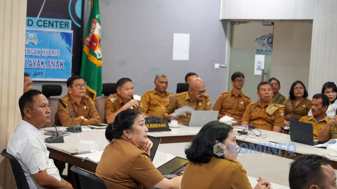Kabanjahe, Karosatuklik.com – Wakil Bupati Karo, Komando Tarigan, SP menghadiri Verifikasi Lapangan Hybrid (VLH) Evaluasi Kabupaten Layak Anak (KLA) Tahun 2025 secara daring melalui zoom meeting yang digelar di Ruang Karo Command Center (KCC), Dinas Komunikasi dan Informatika Kabupaten Karo, Lantai I Kantor Bupati, Jalan Letjen Jamin Ginting No. 17, Kabanjahe, Senin (5/5/2025).