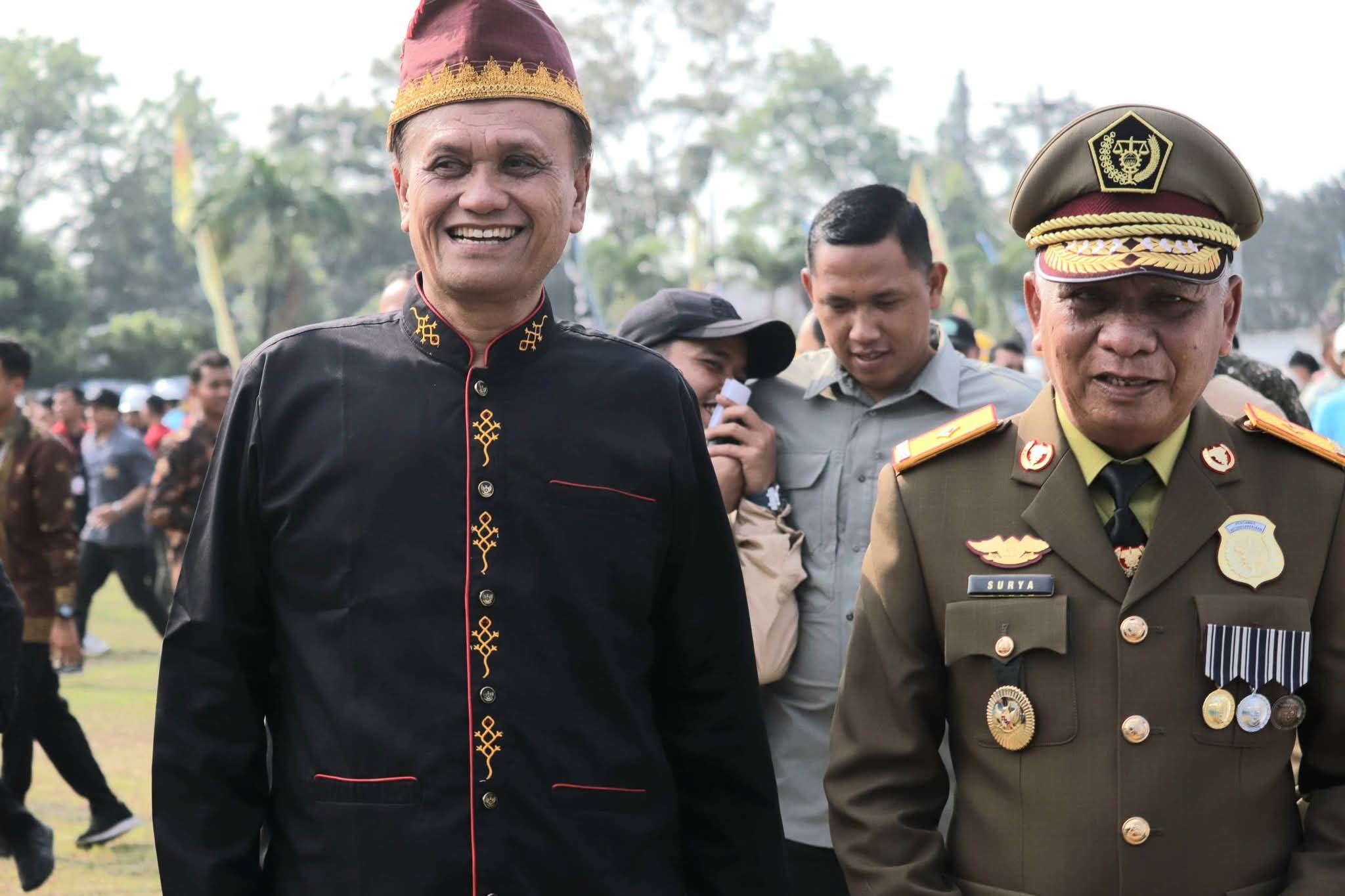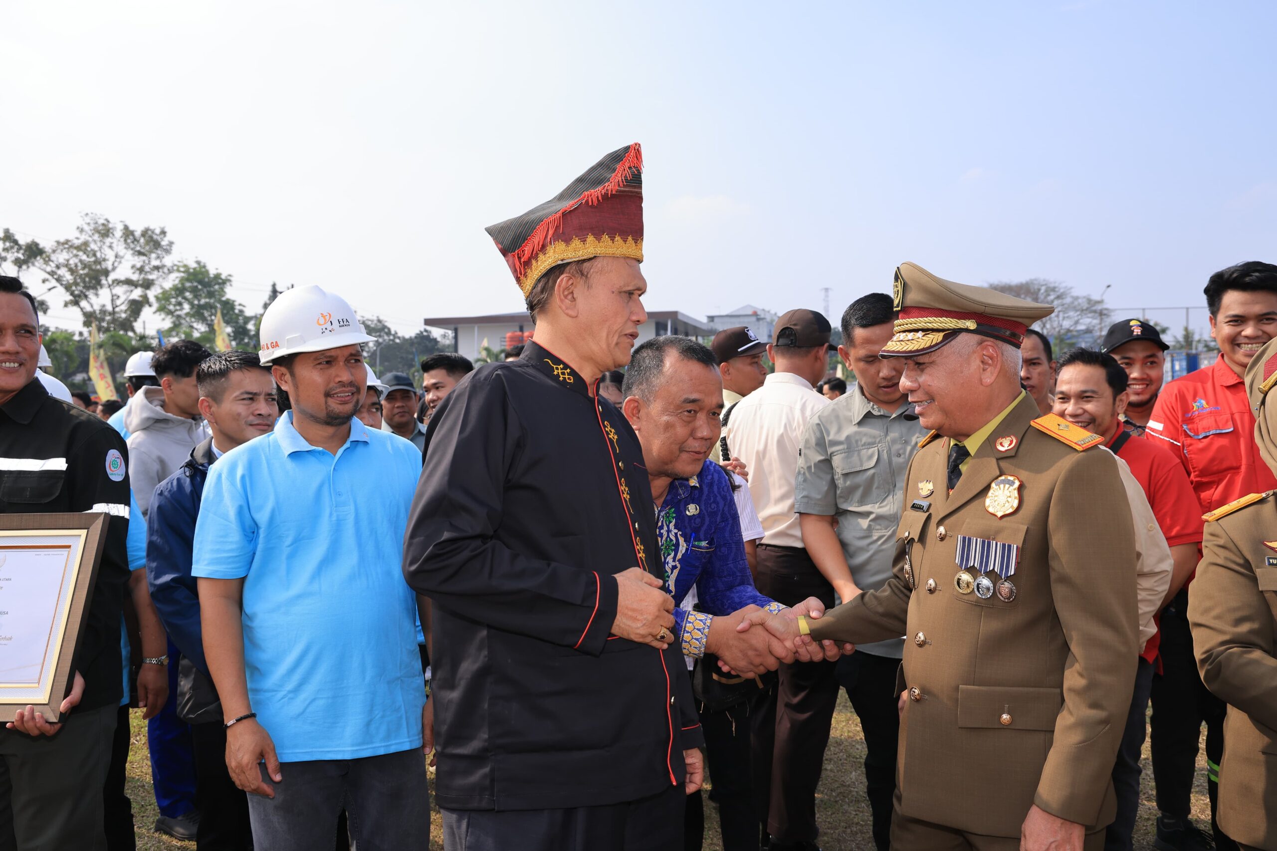 Wakil Gubernur Sumatera Utara, H Surya, B.Sc yang bertindak selaku Pembina Apel sempat mendatangi Mutsyuhito Solin, menyalami dengan hangat Wakil Bupati Pakpak Bharat ini. Dikesempatan Apel Peringatan Bulan K3 ini, Surya membacakan amanat Menteri Tenaga Kerja RI, Prof. Yassierli.