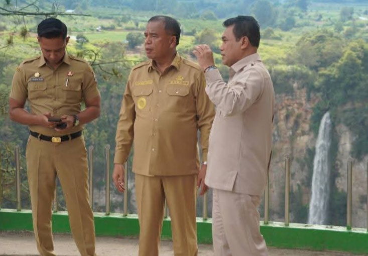 Kabanjahe, Karosatuklik.com – Bupati Karo, Brigjen Pol (Purn) Dr. dr. Antonius Ginting, Sp.OG, M.Kes, menyambut sekaligus mengajak Wakil Walikota Palangkaraya, Achmad Zaini yang didampingi oleh istri Merty Ilona Achmad Zaini beserta rombongan untuk mengunjungi dua destinasi wisata unggulan Kabupaten Karo, yakni Air Terjun Sipiso-piso dan Loken Barn, Selasa 28 April 2026.