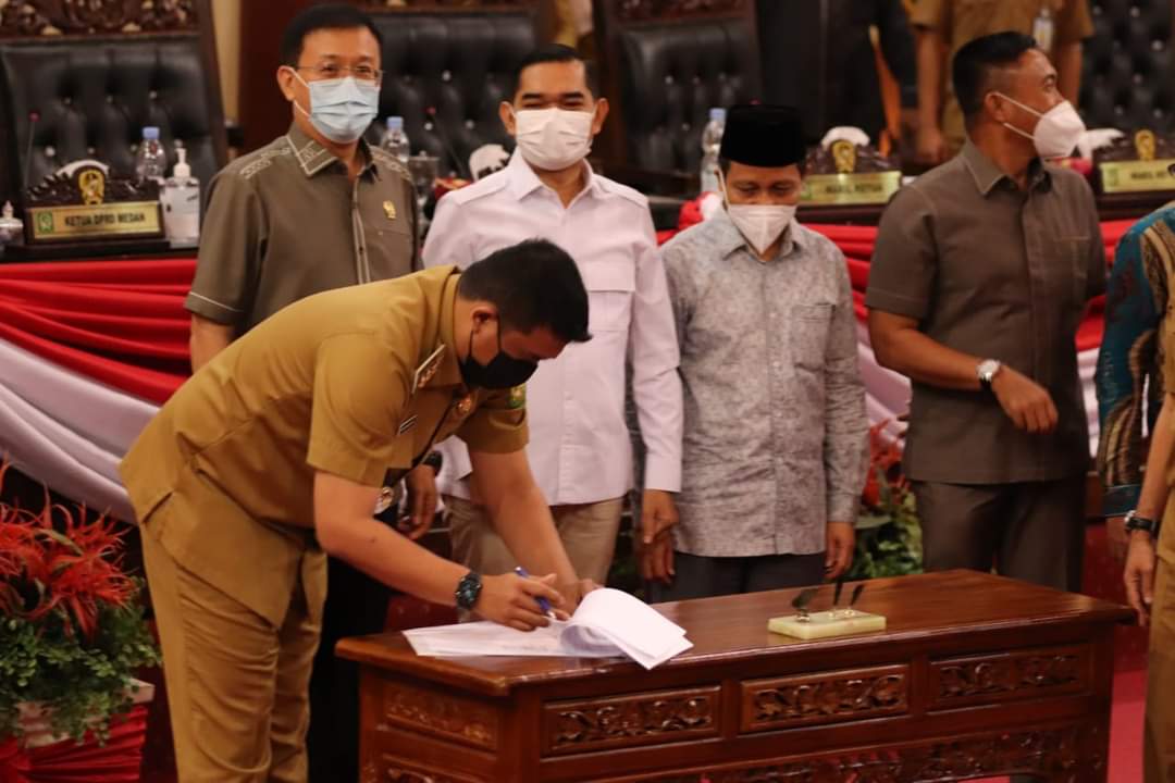 Dalam rapat paripurna tersebut, Wali Kota dan Ketua DPRD Medan Hasyim SE serta tiga Wakil Ketua DPRD Medan selanjutnya menandatangani kesepakatan bersama untuk selanjutnya dilakukan pembahasan sehingga menjadi Perda di tahun 2021.