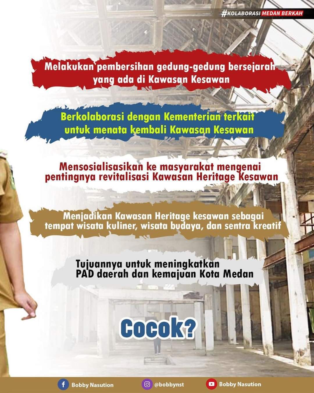 Beberapa point yang disebutkan dalam pemaparannya antara lain, koridor Jalan A Yani akan disi kuliner andalan Medan. Sedangkan pada koridor Jalan A Yani I, II, IV angkringan.