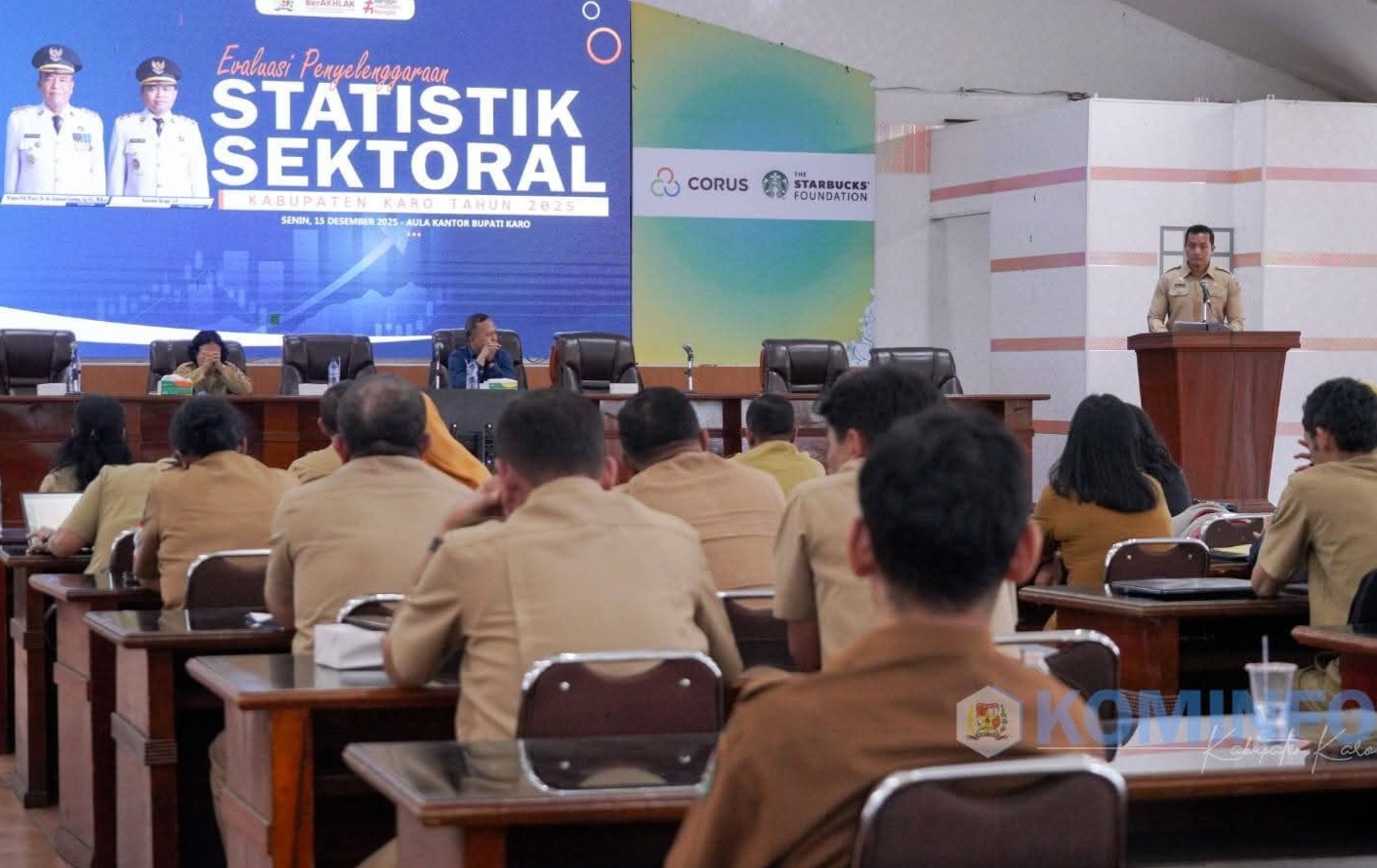 Kabanjahe, Karosatuklik.com – Pemerintah Kabupaten (Pemkab) Karo melalui Dinas Komunikasi dan Informatika (Kominfo) Kabupaten Karo menggelar kegiatan Evaluasi Penyelenggaraan Statistik Sektoral Kabupaten Karo Tahun 2025 yang dilaksanakan di Aula Kantor Bupati Karo, Senin (15/12/2025).