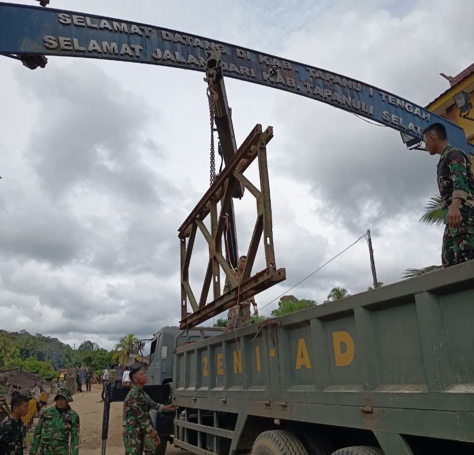 Tapteng, Karosatuklik.com – Satgas Yonzipur I/DD jajaran Kodam I/Bukit Barisan berhasil menuntaskan pemasangan Jembatan Bailey di titik Jembatan Anggoli, Kecamatan Sibabangun, Kabupaten Tapanuli Tengah, pada Rabu (10/12/2025).